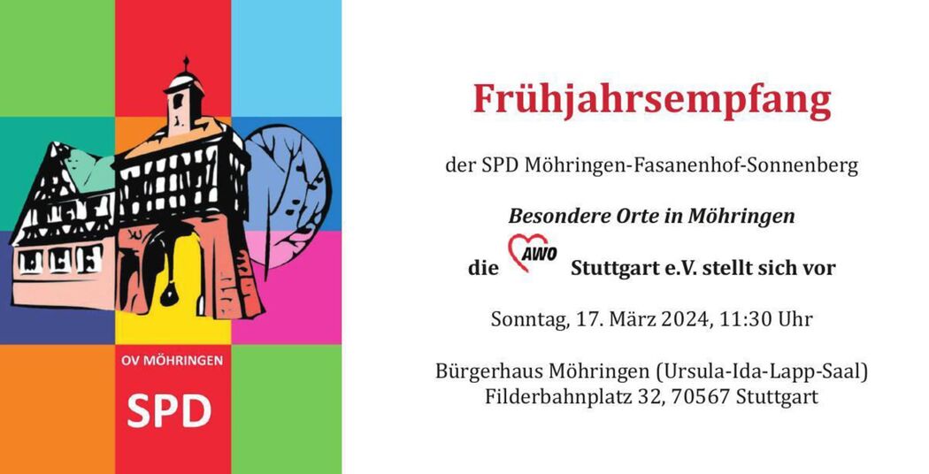 Am 17.03.2024 fand auch in diesem Jahr der traditionelle Frühjahrsempfang des Ortsvereins statt. Die beiden Vorsitzenden Elke Freund-Vlassaras und Dieter Bernhardt konnten wieder zahlreiche Gäste aus der Politik, den Vereinen und anderen Organisationen begrüßen. Bekannte Gesichter aus der Stuttgarter SPD waren vertreten, wie die Kreisvorsitzende und Landtagsabgeordnete Katrin Steinhülb-Joos (die in ihrem Grußwort die lange historische Verbindung von SPD und AWO hervorhob), aber auch die beiden Stadträtinnen Jasmin Meergans und Dr. Maria Hackl.